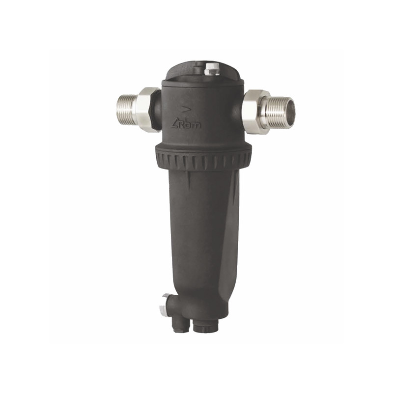 Low head losses Dimension: M1? Detachable magnet 11000 Gauss Double filter Innovative locking system Connections for return temperature probe Integrated purge valve HD polymer Filtering 800µm