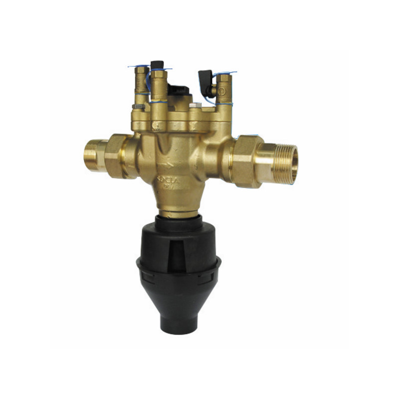 Testable Disconnector BA2860 SOCLA with reduced pressure zone Application: Protection of drinking water networks. M/M screw connection delivered with unions, max. temperature: 65°C, max. pressure: 10b Disconnector with built-in funnel: ultra-compact, space-saving Body, cap, socket, brass nut Approvals: ACS, NF, EN12729, EN1717