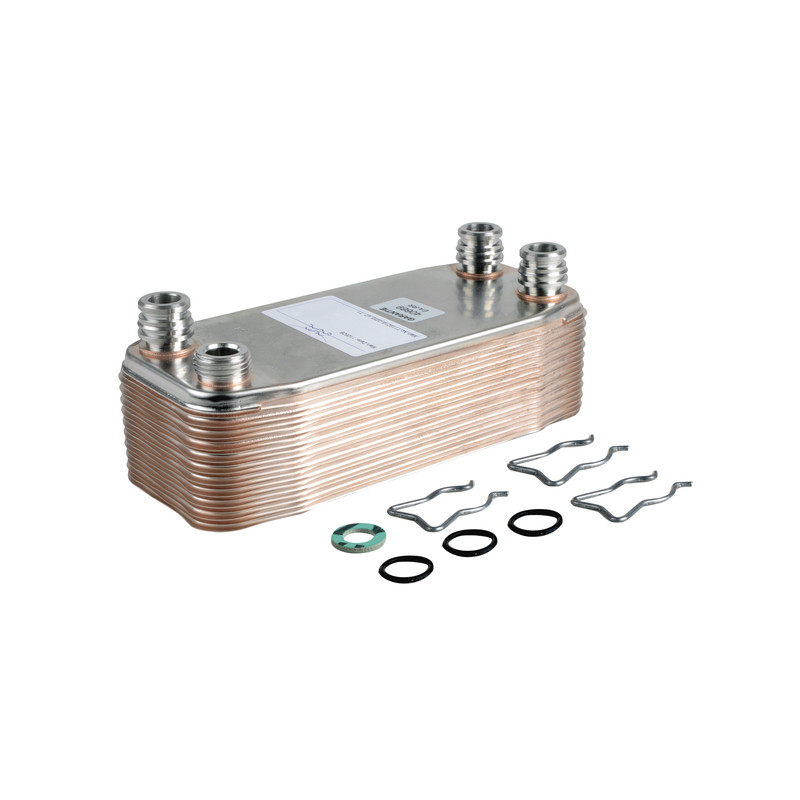 Domestic hot water exchanger 20 platesAdditional information:This part is an original spare part FROM parts manufacturer, it is labelled AND packaged under the DIFF distribution brand.Feature AND Benefit:This part has the same quality AND efficiency standards as the original part.It can have a benefit compared to the original part.Feature: Piece different in its aspect but dedicated to the same use.WITH 1 CLIP LESS