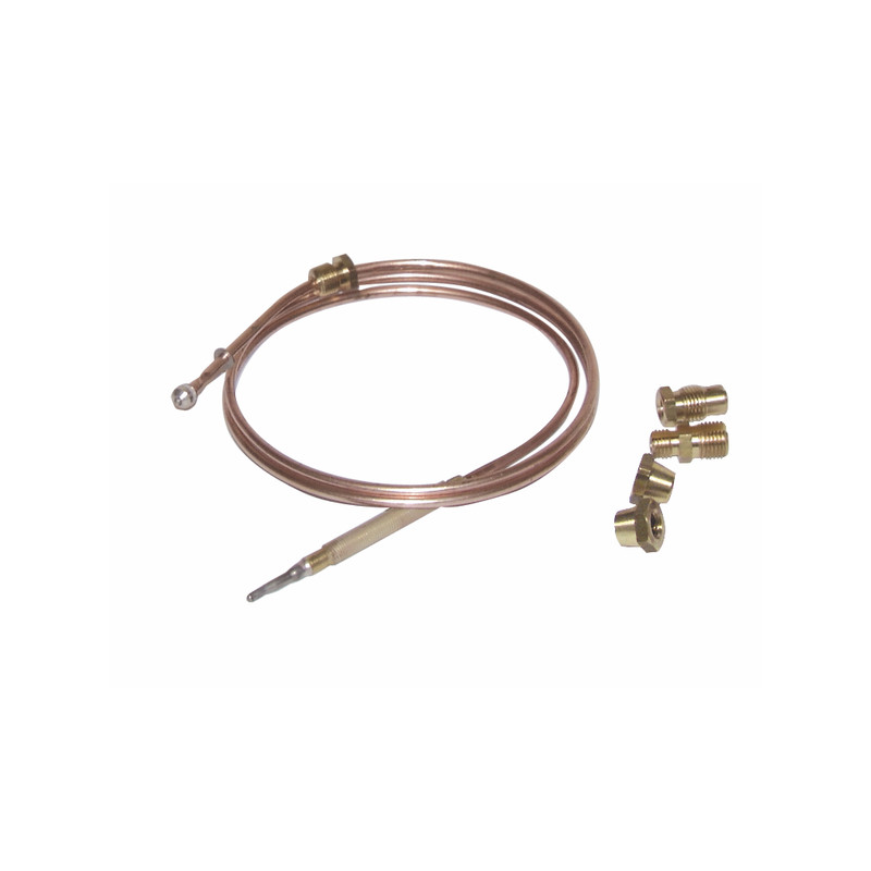 For an easy thermocouple replacement on gas appliance, it is very important to have a standard longer-life thermocouple with all necessary fittings to be fitted on burner pilot and gas valve. This is the reason why we created the UNIVERSAL THERMOCOUPLE with 6 FITTINGS to allow a fast, easy, one-hand installation. The UNIVERSAL THERMOCOUPLE 6 FITTINGS can be used with following burners pilot. CATOBA - CHAFFOTEAUX - ELM LEBLANC - FURIGAS - HONEYWELL - INAMET ITT JOHNSON CONTROLS - JUNKERS - ROBERTSHAW - SAUNIER DUVAL -- SIT THEOBALD - VAILLANT - WHITE RODGERS .Note : The thermocouple head is made with inconel 600 which generates between 30 and 32 millivolt. The thermocouple head can endure high temperature about 700 and 800°.