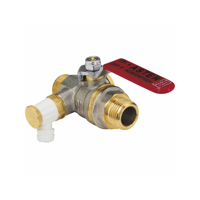 Temperature limits: for fluids from -15°C to +90°C Pressure limits: for fluids 40b The ASTER ball valve with full-flow bleed, is equipped with a rotary bleed valve to allow a connection with a tube for easy draining in all positions of liquids normally used in heating, air conditioning systems, and water circuits in general. The bleed is closed by a knurled knob. The ASTER ACS BLEED series is recommended in drinking water distribution, heating installations, and in water and air conditioning systems. Standard thread conforming with UNI ISO 228/1 standards