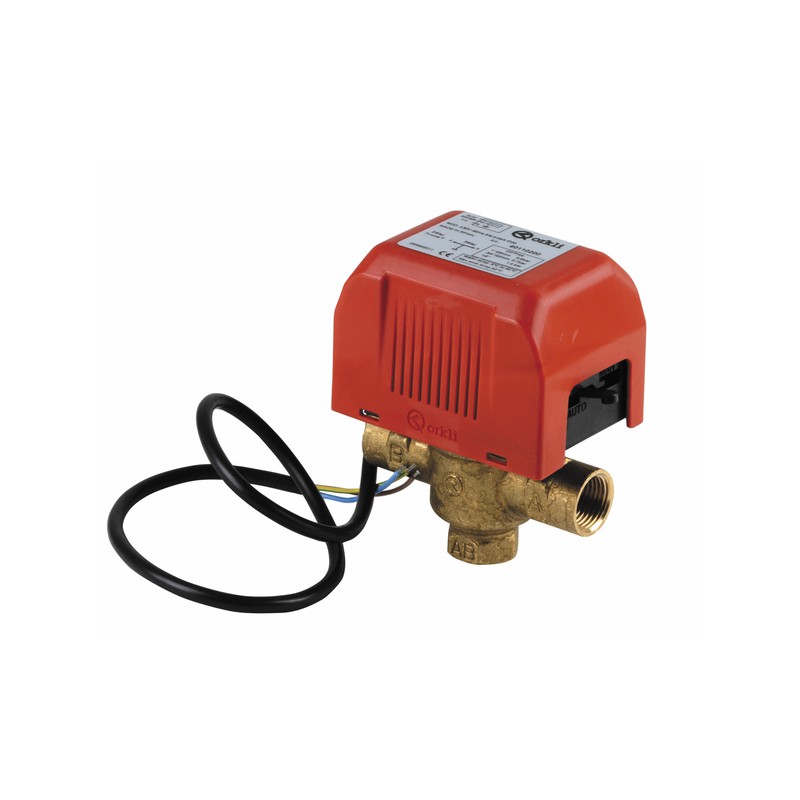 WITHOUT MICRO CONTACT : On-Off valve motorised Hysteresis Motor 230V 50Hz Without voltage, the choke returns by itself to the starting point Featuring supply of connected motor and valve Spring return Normally closed in A Lead 60cm 3 wires (2 + 1 earth) F1" Dimensions : Center distance 95mm x W 64mm x H 120mm