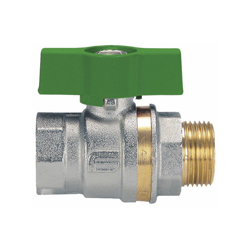 Valve certified NF 13828 and NF 079 by the French quality control CSTB Safety and regulating valves category Certificate of Sanitary Conformity ACS Body and threaded end UNI ISO 228/1 CW617N brass manoeuvring stem, chrome-plated polished ball PTFE seal O-ring on the stem in HNBR O-ring under the stem in EPDM peroxide Green epoxy coated aluminium manoeuvring T-handle Fixing screw CW617N Nickel plating outside surface treatment Working temperature -5° to 90° C with peak at 110°C max 1 hour Full bore Anti blow out stem CE 97/23/CE Used for heating and cooling water, drinking water Compressed air low pressure (less than 10 bar) for DN less than 32